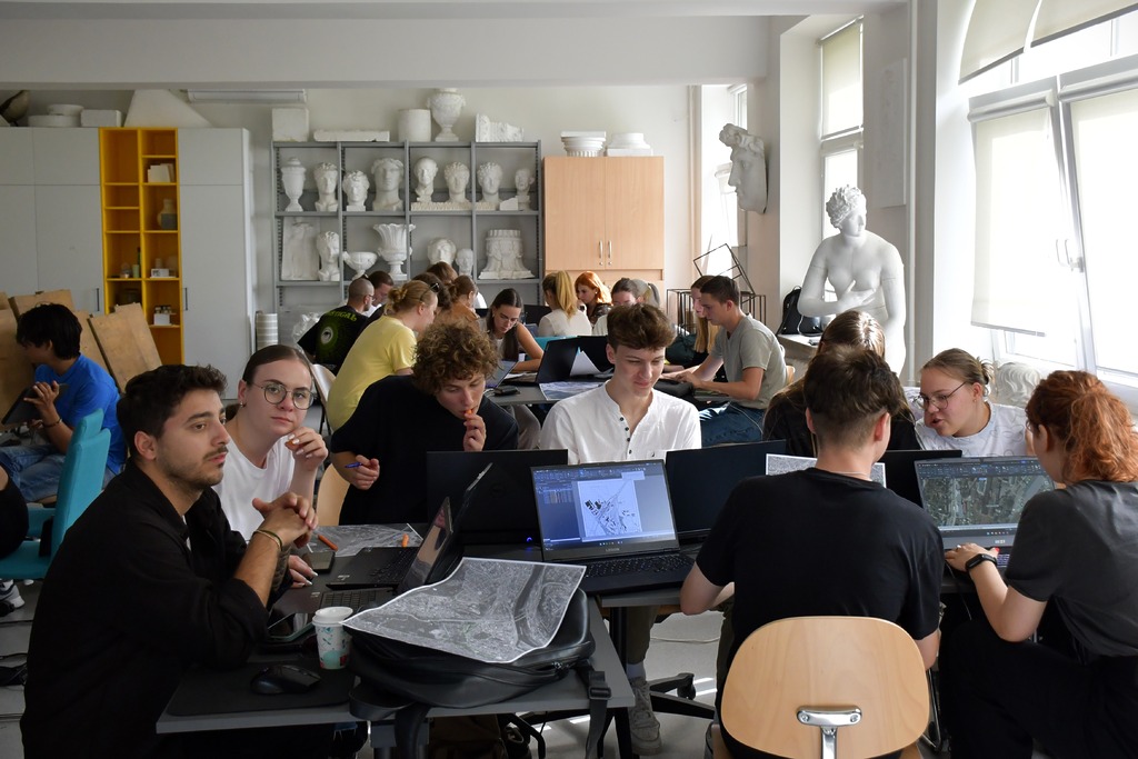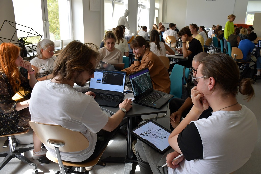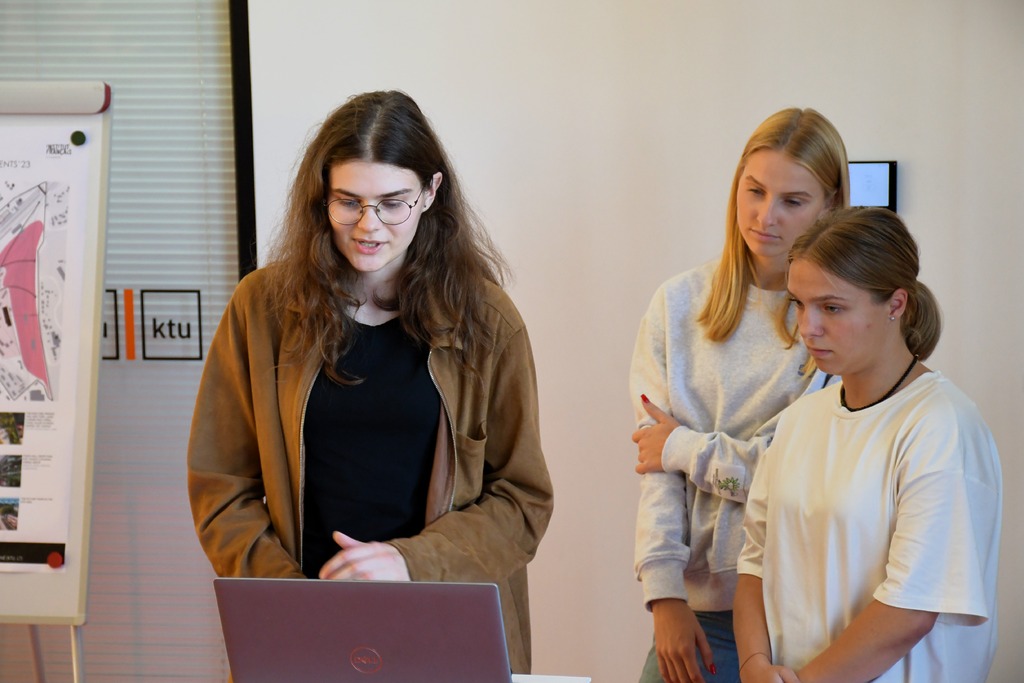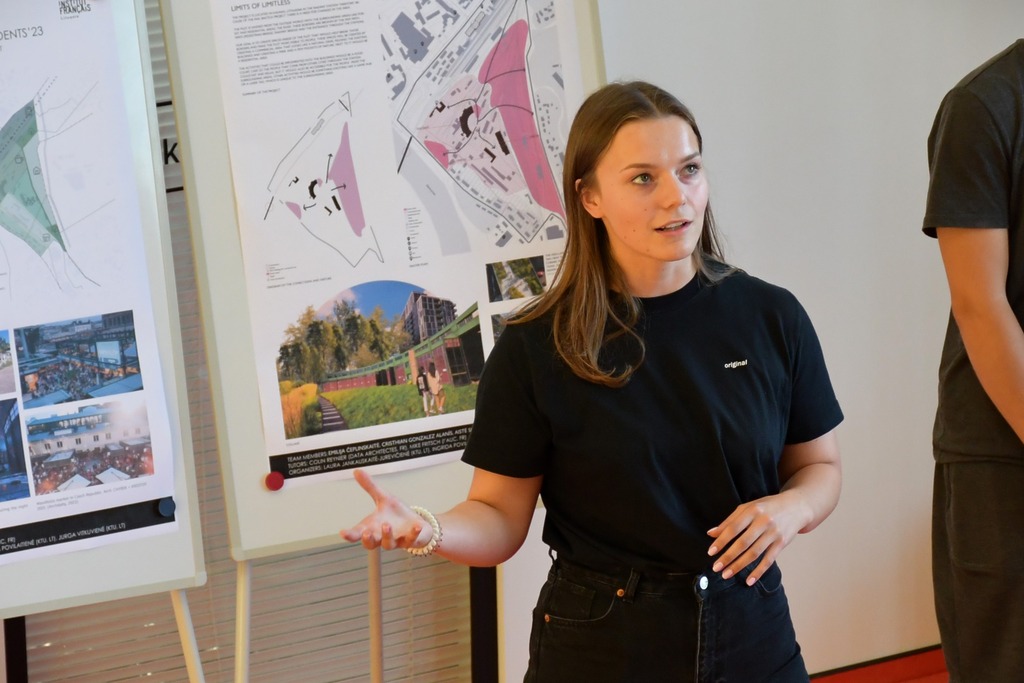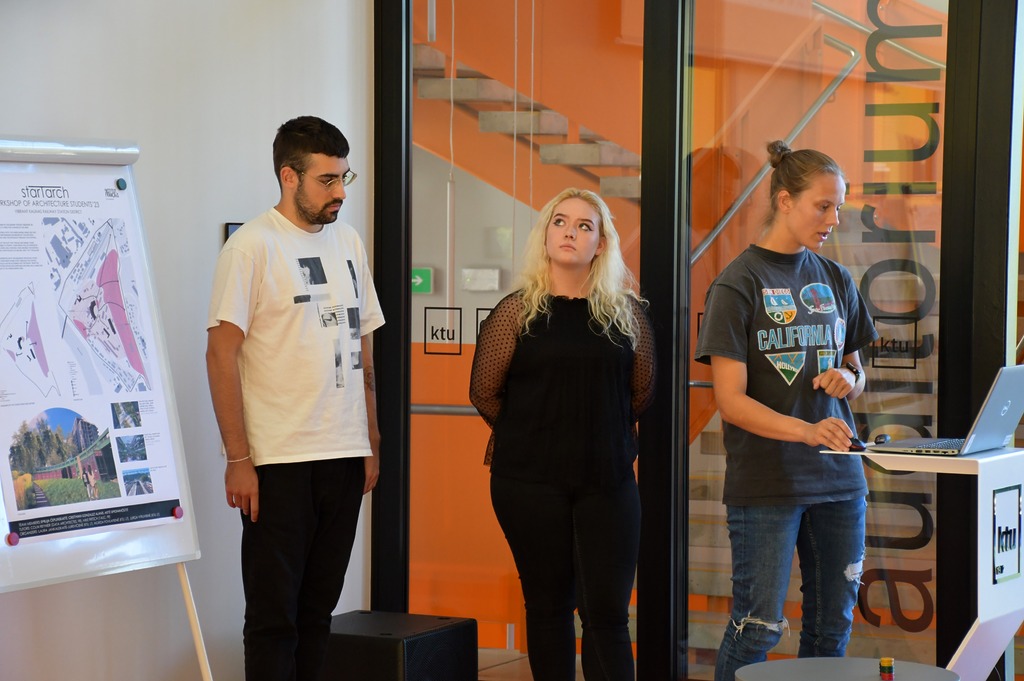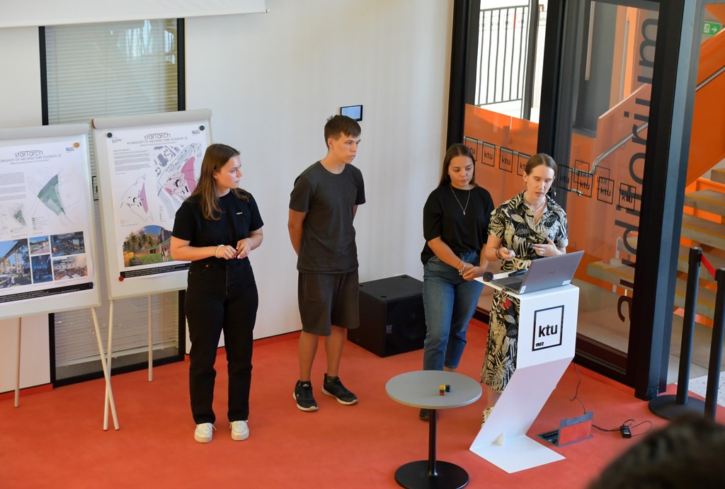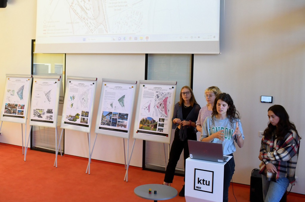 The first study week of this academic year 2-4 year architecture students participated in the workshop StarTarch! The workshop was the result of the second year of cooperation with the French Institute in Paris and the French Institute in Lithuania. This year, students created a vision of a vibrant Kaunas railway station district. They were advised by architects from France Colin Reynier (DATA architects) and Mike Fritsch (l‘AUC). Lithuanian Railways representative Vytautas Tilinskas spoke about the Rail Baltica project and the role of Kaunas station in it. Students were also consulted and evaluated by KTU lecturers.